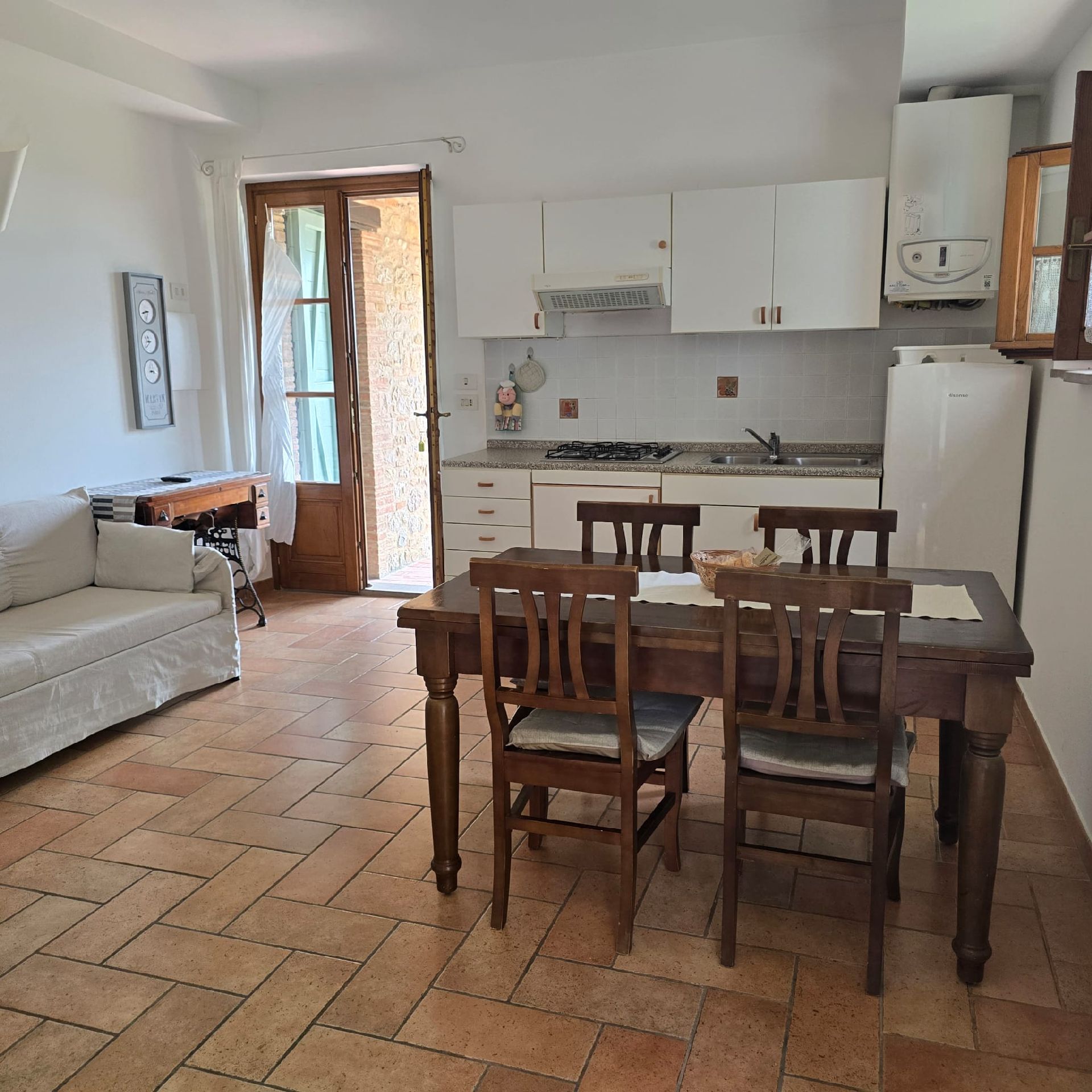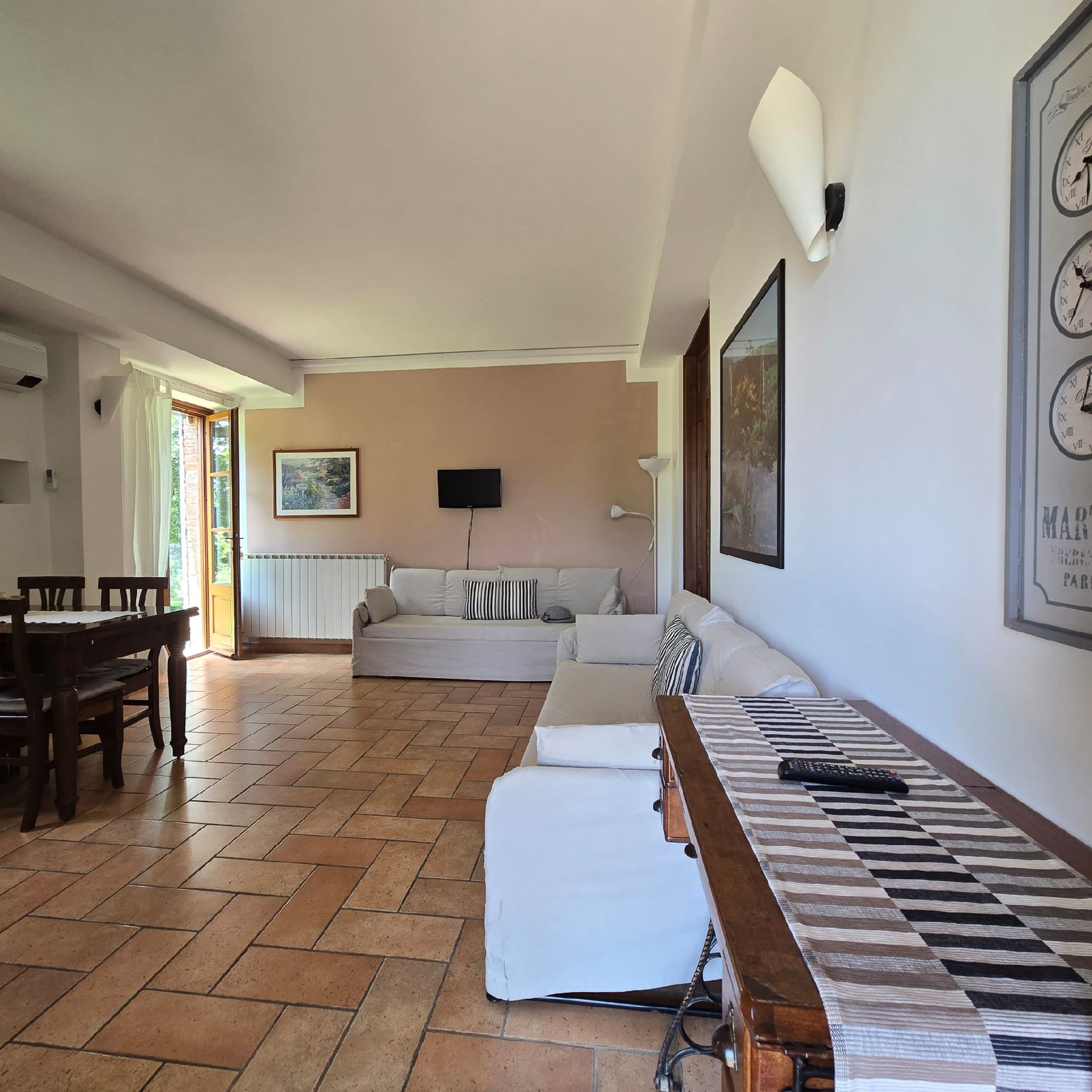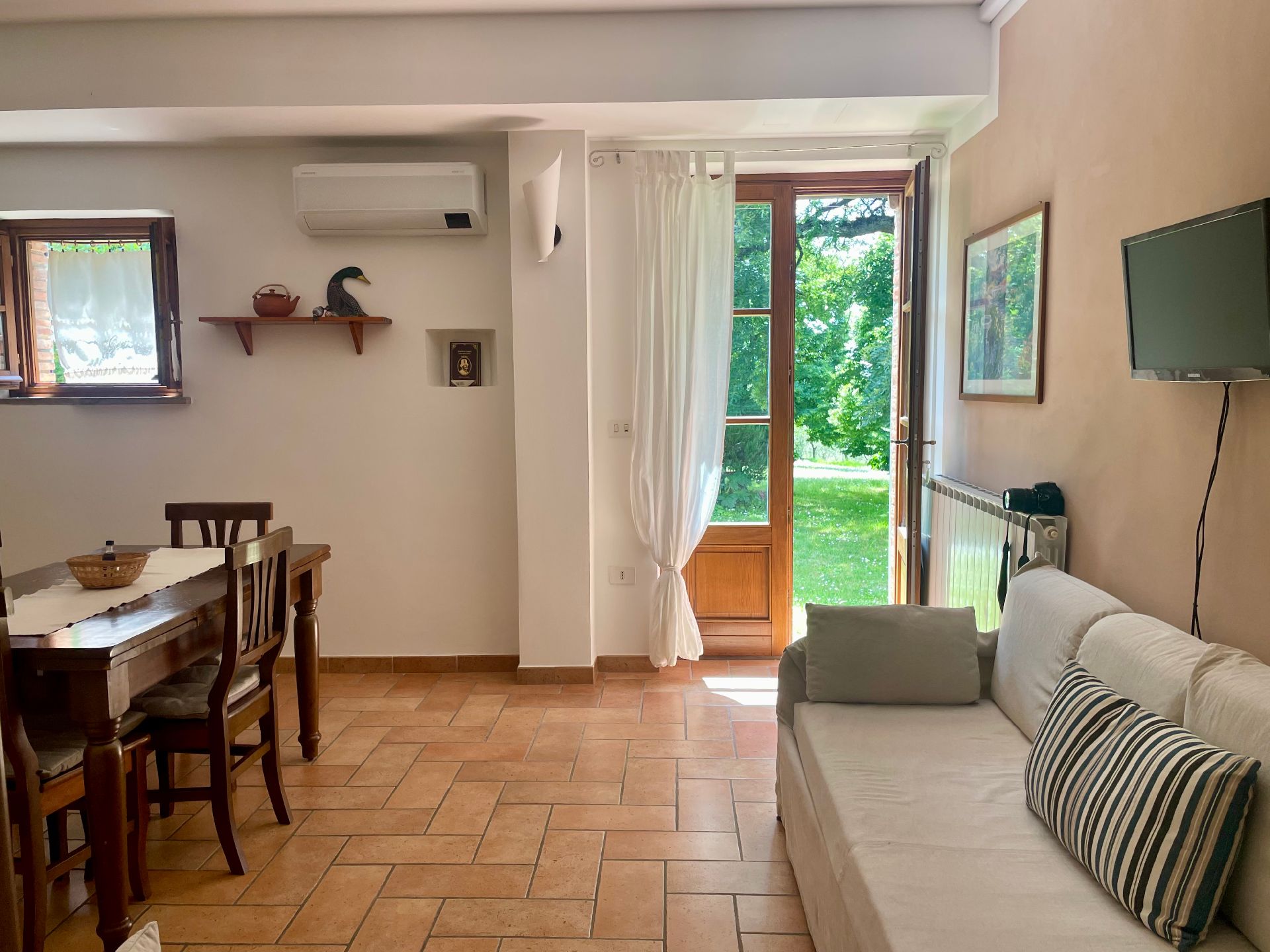 Appartamento bilocale in pietra e mattone posto al piano terra con giardino attrezzato con tavolo per mangiare all’aperto