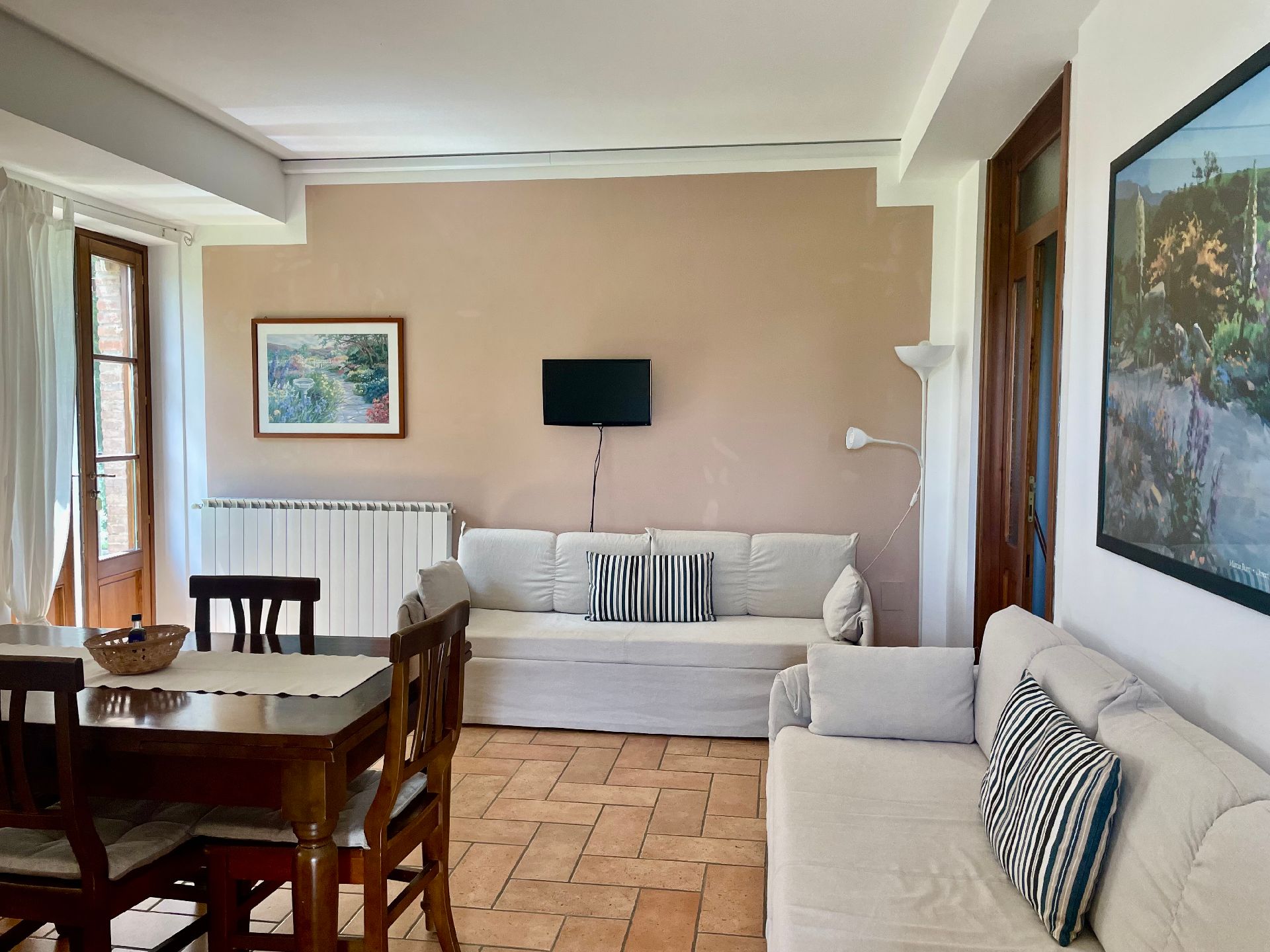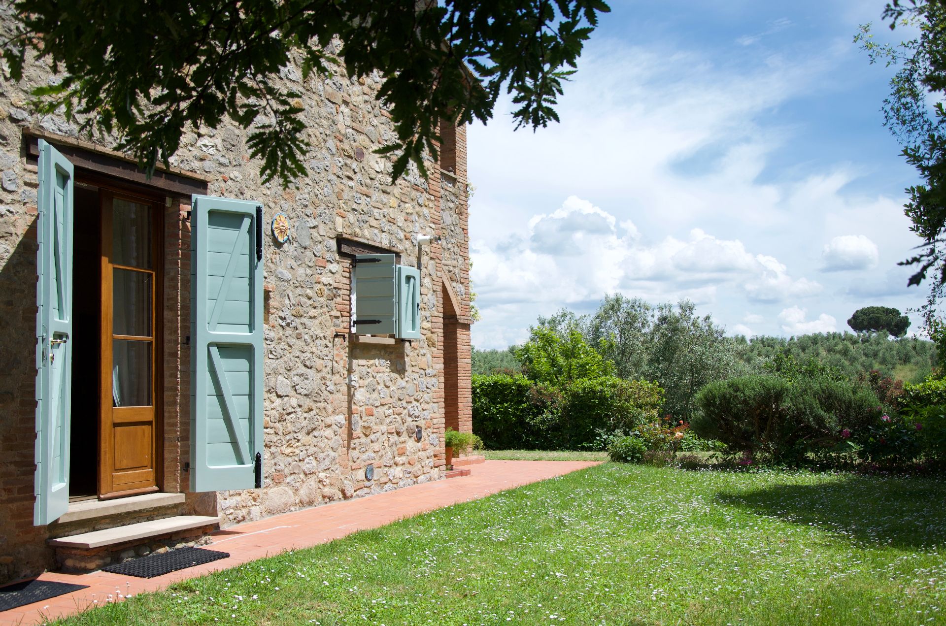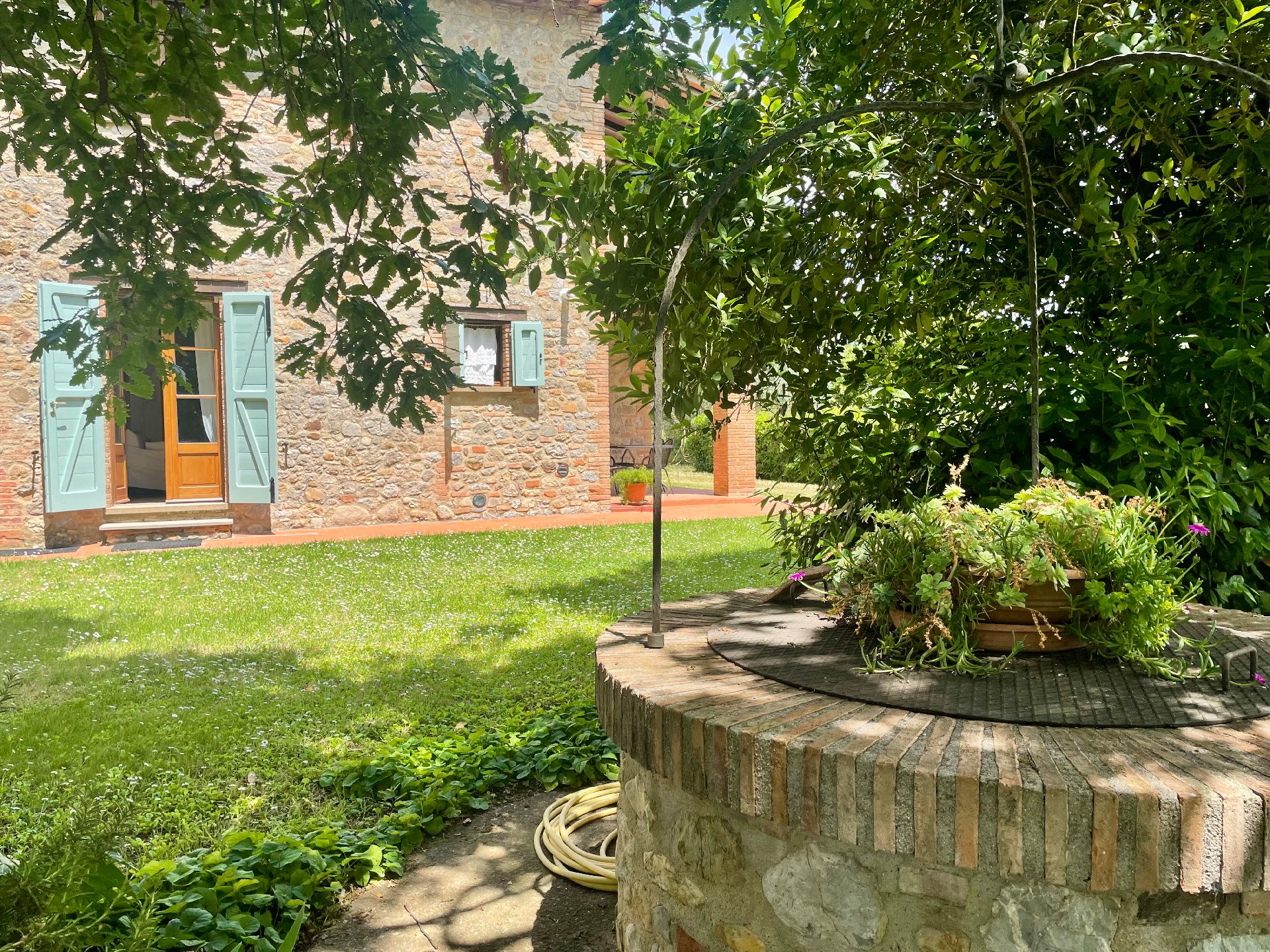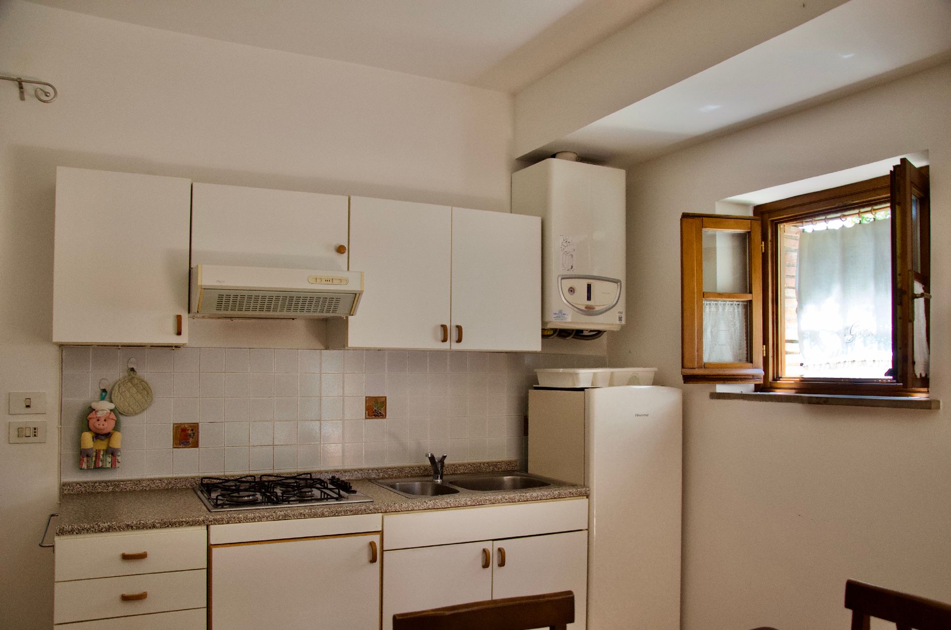 Appartamento bilocale in pietra e mattone posto al piano terra con giardino attrezzato con tavolo per mangiare all’aperto